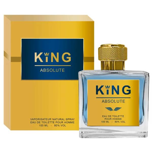 King Absolute - композиция аромата сложная, фужерная. Свежий, но в то же время мужественный древесно – травянистый аромат с нотой грейпфрута, розмарина, хвои, кедра. В сердце аромата сладковатый иланг-иланг и тубероза делают аромат аристократичным и изысканным. В шлейфе аромата тандем кожи и дерева, а так же прекрасно ощущается сила и мощь белого кедра и брутальные замшевые нотки.
