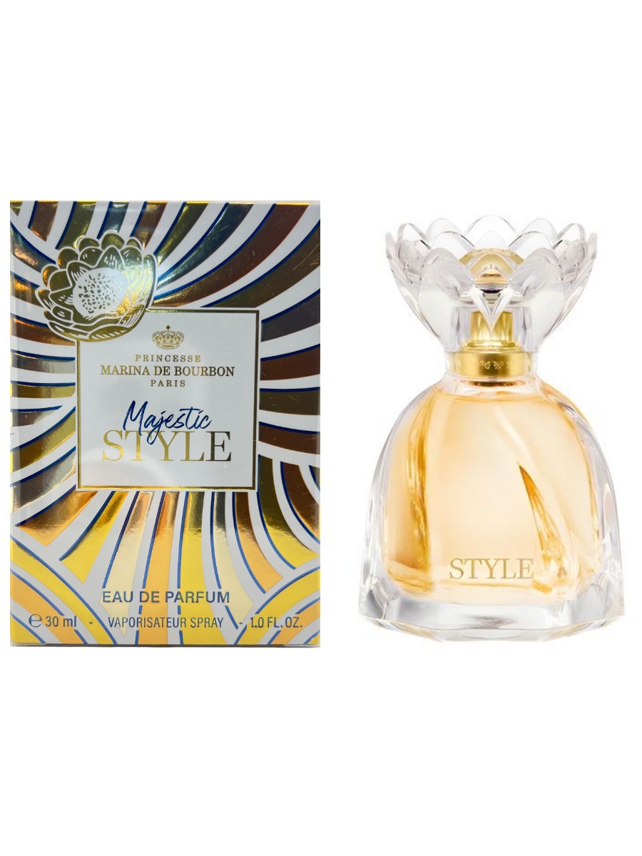Majestic Style (величественный стиль) - женский шипровый цветочный аромат от Marina de Bourbon, созданный в 2024 году. Этот пленительный аромат открывается опьяняющим и сладострастным цветочным букетом, усиленным свежестью цитрусовых и оттенками чая, а чувственность пачули и благородство древесины придают ему магнетическую, обволакивающую и соблазнительную глубину.