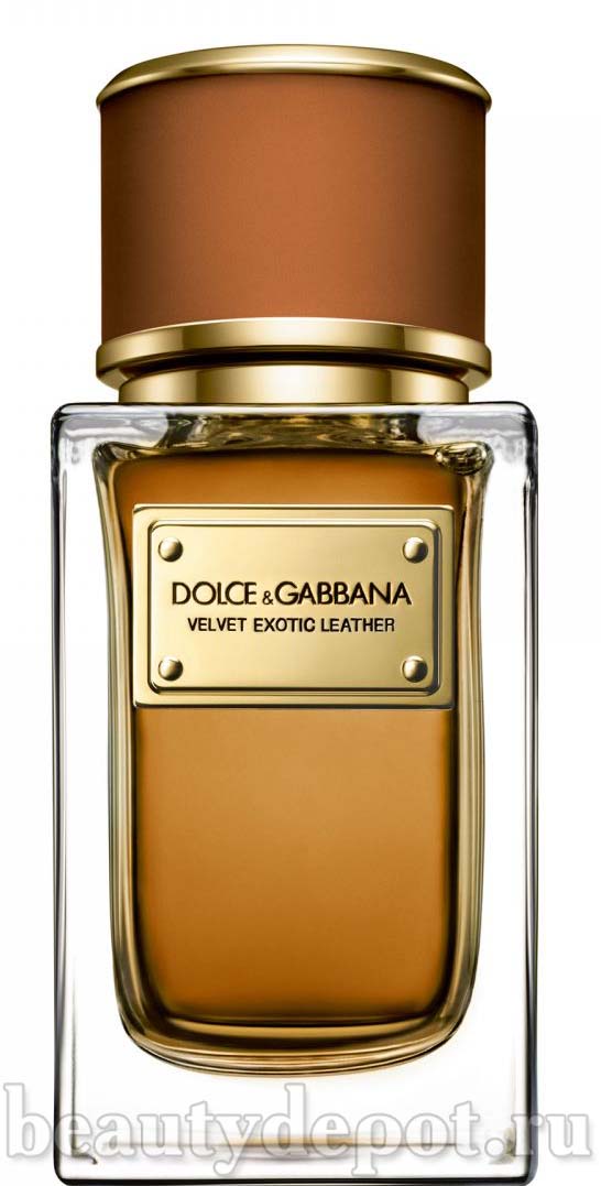 Dolce & Gabbana Velvet Exotic Leather (Дольче Габбана Велвит Экзотик Левэ). Парфюм выражает собой сущность мужчины, его аромат и его мужественность. Это чувственный и утонченный аромат. Композиция открывается с запаха насыщенного стиракса с оттенком кожи и лабданума. Сердце полно свежего шалфея и лаванды с оттенком можжевельника. Шлейф полон оттенка рома с теплым и смолистым ладаном.