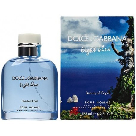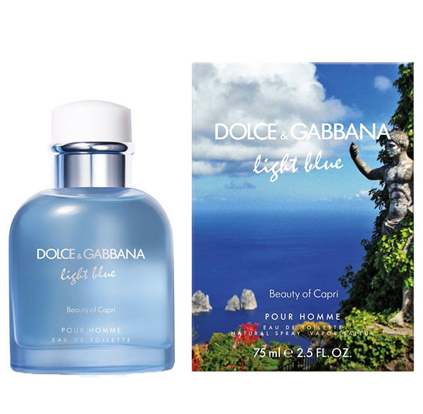 Dolce & Gabbana Light Blue Beauty of Capri Pour Homme. Аромат передает естественную красоту и богатство острова, мерцающих камней вдоль побережья и зеленых лесных пейзажей на берегу моря. Открывается характерными цитрусовыми нотами Сицилийского бергамота и цитрона. Сердце аромата построено на нотах листа горького апельсина, а его шлейф включает ноты кедра и ветивера.