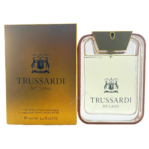 Аромат My Land открывается цитрусовыми нотами зеленого мандарина и бергамота, ведущих фужерному сочетанию нот, состоящих из молекулы калоне, фиалки и лаванды. Кожаная нота, присутствующая в базе, доминирует над ароматом бобов тонка и ветивера, превознося шик и утонченность на первое место. Мужчина Trussardi My Land чувствует себя превосходно, свободно и невозмутимо на своей территории! Дизайн флакона Trussardi My Land, "одетого" в стильный кожаный чехол, разработан при участии итальянского архитектора Antonio Citterio. Парфюмер Trussardi My Land - Alexandra Kosinski.