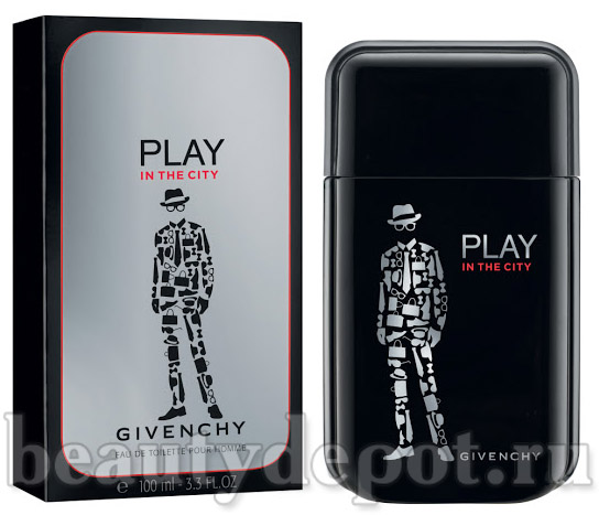 Givenchy Play In The City For Him (Плей Ин Зэ Сити Фо Хим). Провокационный аромат обращен к отважным и современным обладателям, бескомпромиссным и ценящим независимость. Герои парфюма обаятельны и темпераментны, привлекательны и свободны, чувственны и элегантны. Оригинальные пряные ноты оставляют место смелому, чувственному аккорду с дерзким шлейфом. Флакон аромата черного цвета, украшен рисунком мужского силуэта в шляпе и темных очках.