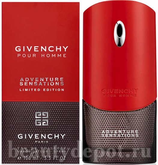 Givenchy Pour Homme Adventure Sensations (Живанши Пур Ом Адвэнчур Сенсэйшн) - аромат Pour Homme Adventure Sensations сохранил благородство и индивидуальность классического аромата, используя все его оригинальные компоненты. Новые свежие и яркие грани появились благодаря добавлению новых компонентов. Прекрасный баланс между властью, мужеством, элегантностью и роскошью.