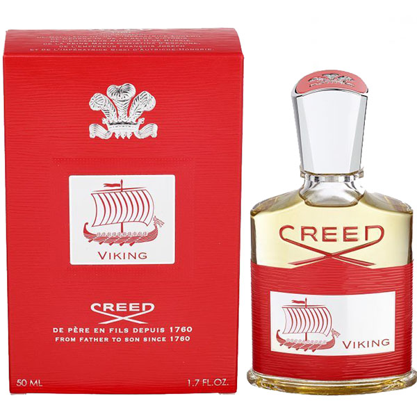 Viking – превосходный аромат с фужерным древесным ароматом для мужчин создан в 2017 году парфюмером Olivier Creed для модного бренда Creed. Насыщенный страстный аромат вдохновлен морской романтикой дальних плаваний и удивительными приключениями сильных мужественных людей, смело спешащих к достижению целей и лишенных компромиссов. Аромат открывается свежим цитрусовым аккордом бергамота, пряно-специевыми нотами восточного розового перца и вяжущим травянистым оттенком черной смородины. Глубокое «сердце» композиции мощно переплетается терпкими нотами влажной древесины, соли и пряно-медовыми цветочными оттенками розы, звучащими на фоне вкусных сочных фруктовых акцентов. Теплый мшистый шлейф аромата Creed Viking наполнен нежными сливочными древесными оттенками сандала, тонким запахом амбры и горьковатыми нотками морской соли.