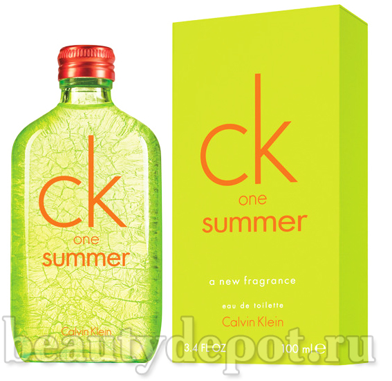 Calvin Klein CK One Summer 2012 (Кельвин Кляйн Уан Саммер 2012). По традиции, которая берет свое начло в 2004 году, каждое лето марка Calvin Klein встречает лимитированным выпуском аромата унисекс CK One. Каждый раз это новый аромат и новый дизайн - всегда яркий, солнечный и аппетитный - как ледяное фруктовое мороженое в жаркий день. На этот раз Кельвин Кляйн Уан Саммер открывается бодрящими нотами голубой мяты, огурца, лайма и бергамота. Насыщенные и сочные ноты зеленого яблока и розмарина в сердце подчеркивают сладость летних дней. Прозрачные и свежие аккорды водыи лотоса оставляют ощущение прохлады на согретой солнцем коже. Постепенно проявляются мягкие шлейфовые ноты - ромовый коктейль и сандал.