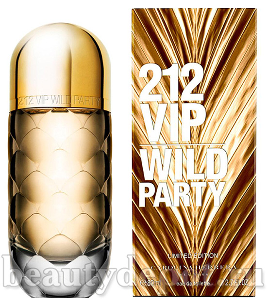 Carolina Herrera 212 VIP Wild Party. Настоящий золотой коктейль из экзотических, захватывающих нот! Смелый и капельку эксцентричный, он поражает воображение сочными аккордами спелого ананаса и пикантного, с легкой горчинкой грейпфрута. Затем парфюм раскрывается "сердечными" нотами, где цветет экзотическая томная орхидея, царственная роза и нежнейший цветок апельсинового дерева. Классическая база долго раскрывается запахами соблазнительного мускуса и древесными акцентами.