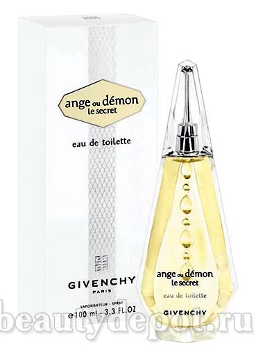 Givenchy Ange Ou Demon Le Secret Eau De Toilette (Живанши Ангел или Демон Ле Секрет Ау Де Тойлет). - ода нежности и любви, фруктовый цветочный аромат, который напоминает весенний восход солнца. Для этой новой туалетной воды Givenchy создает изящную композицию с сочными верхними и обольстительными средними нотами. Уникальная гармония свежих фруктов, очаровательных цветов и нежного мускуса придает современное и чувственное звучание новому аромату, отражая его двойственность. Одновременно невинная и провокационная, как запретный плод, нота сладкого яблока в карамели заставляет голову кружиться, а яркий аккорд чайного листа и бергамота наполняет воздух взрывной свежестью. Окутывает и очаровывает, сочетание жасмина и розы, а аккорд белого мускуса, амбры и пачули наполняет сердце мягкой нежностью.