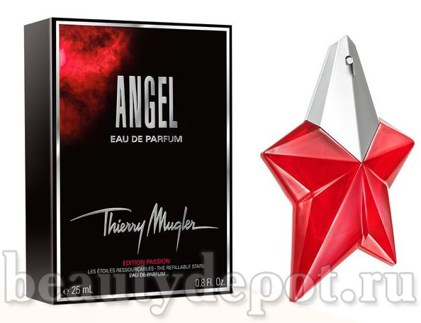 Thierry Mugler Angel Edition Passion (Тьерри Мюглер Ангел Эдишн Пешн) - аромат создан для ярких и уверенных в себе женщин. Композиция открывается с ноток сочной дыни, кокоса, мандарина, плавно переходя в мир душистого жасмина, черной смородины с оттенком бергамота и сахарной ваты. Сердце аромата полно цветочно-цитрусового ягодного рая в виде абрикоса, персика, ноток еживики, орхидеи, душистого жасмина, ландыша, плавно переходя в мир красных ягод и роз с отенком меда и сливы. Шлейф полон ноток бобов тонка, пачули и мускуса с оттенком амбры, ванили, темного шоколада и карамели, что придает парфюму некую страстность и шарм.