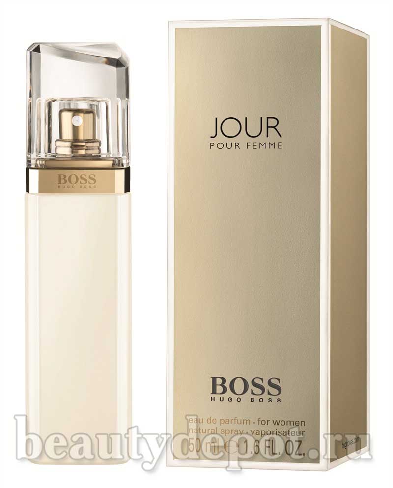 Hugo Boss Boss Jour Pour Femme принадлежит семействам цветочных ароматов и характеризуется разносторонним умеренным звучанием. Букет парфюмерной композиции строится вокруг насыщенных аккордов белых цветов, которые дополняются выразительными акцентами других различных цветочных нот, умеренными цитрусовыми ароматами, а также легкими кожаными аккордами и тонкими янтарными акцентами. Boss Jour Pour Femme заключен в высокий стройный флакон молочно-белого цвета с прозрачным колпачком и золотистыми деталями.