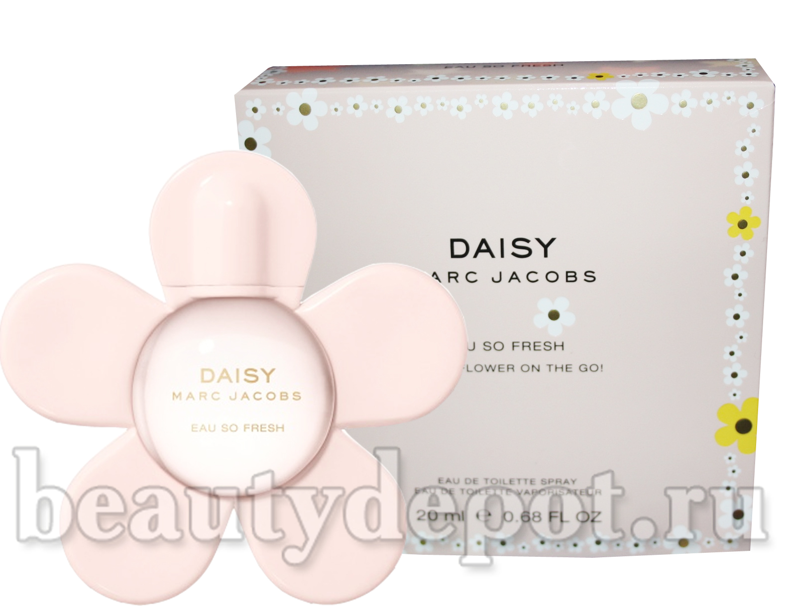 Marc Jacobs Daisy Eau So Fresh Petite Flower On The go! (Марк Джейкобс Дейзи Соу Фреш). Ароматы Daisy в новом лимитированном выпуске Petite Flower On The Go! Что дословно переводистя как "Маленькие цветки вперед!" По словам Марка Джейкобса, неотразимые ароматы Daisy перевоплотились в яркие, солнечные и игривые цветочки. Оригинальная крышечка Daisy выполнена в белом цвете, а крышечка Daisy Eau So Fresh - в нежно розовом. С Daisy Eau So Fresh Petite Flower On The Go! можно наслаждаться любимыми ароматами, где бы Вы не находились.