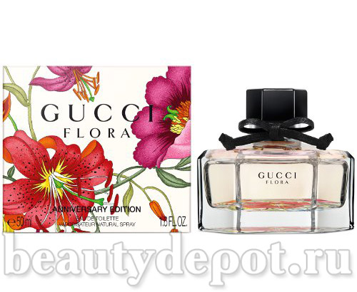 Gucci Flora by Gucci Anniversary Edition. Композиция открывается с ноток мандарина, груши с оттенком перца. Сердце полно аромата розы с оттенком османтуса и пиона. Шлейф полон ноток кожи, пачули с оттенком белого кедра и мускуса.