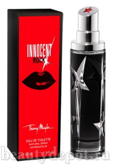 Thierry Mugler Innocent Rock (Тьерри Маглер Инносент Рок, в пер. Невинный Рок). В этом аромате скрыты соблазн и колдовскя сексуальность. Аромат перенесет Вас в самый центр рок-вселенной, заставит почувствовать суть этого таинственного мира, в котором перемешались дьявольское и ангельское начала. Аромат Innocent Rock вдохновлен оригинальным Innocent, но в нем с большим акцентом звучат ноты чувственности и яркой провокационности. Эта очаровывающая фруктово-пряная композиция включает ноты личи, виноградного ликера, красной розы и черного перца.