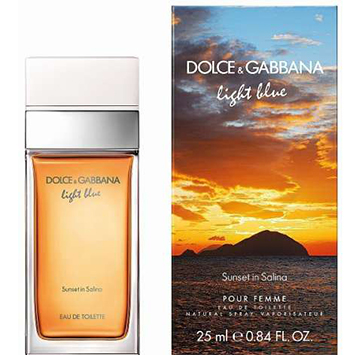 Dolce & Gabbana Light Blue Sunset In Salina (Дольче Габбана Лайт Блю Сансет Ин Салина). Загадочный аромат с мягкими обволакивающими цветочными оттенками. Создатели парфюма говорят о романтичных голубых тонах заката на острове Салина, которым так приятно наслаждаться на открытой террасе за бокалом Мальвазии в окружении цветущих кустов теплолюбивой фрезии.