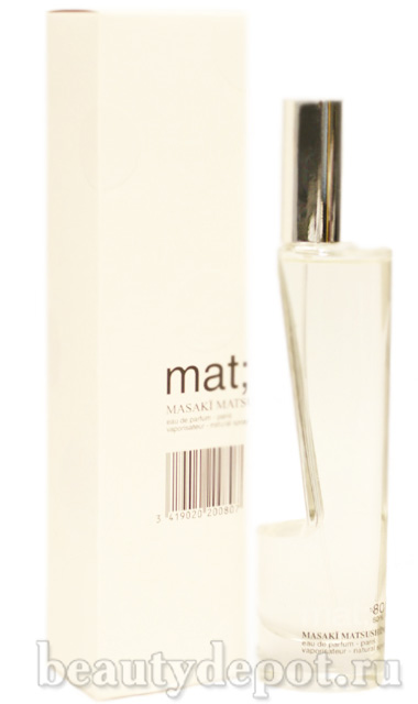 Masaki Matsushima Mat; (Масаки Матсушима Мэт). Ароматическая гамма Mat; представляет собой причудливую смесь традиционных японских благовоний и активных урбанистических нот. Сочетание таких компонентов, как побеги бамбука, дыня, мята, цветок лотоса, листья чая и петрушки, дают совершенно оригинальный, ни на что не похожий аромат.