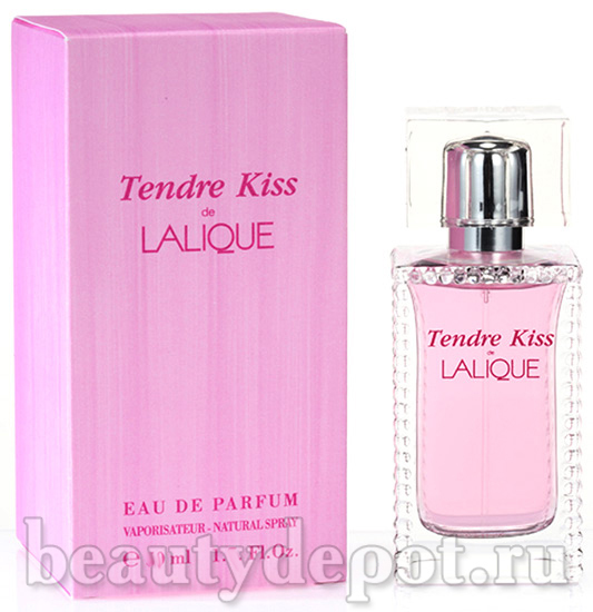 Lalique Tendre Kiss De Lalique (Лалик Тендре Кисс де Лалик) - чуткий и нежный цветочный аромат, предназначен для современной, романтичной женщины, которая видит жизнь в розовом цвете. Энергичная, привлекательная и независимая она всегда в отличном настроении, и исходящее от нее ощущение радости жизни делает ее неотразимой в глазах окружающих. Раскрывающийся в верхних нотах букет из пиона, личи и красного перца сменяется сердечными аккордами цветов иланг-иланга, красного жасмина и специй. Оттеняют это великолепие в шлейфе теплая амбра, смолы (ладан и опопанакс), густая ваниль, сандал и мускус. Флакон по периметру украшенмаленькими розами.