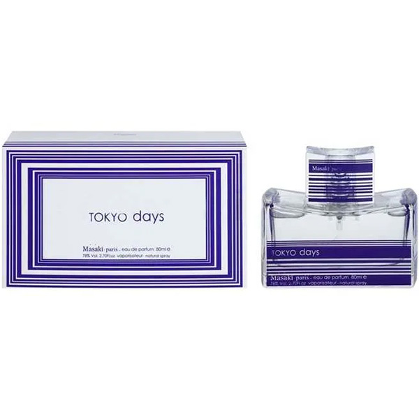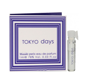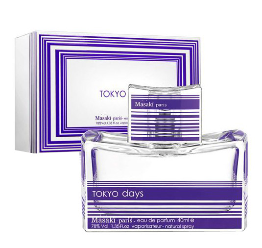 Masaki Matsushima Tokyo Days (Токио Дэйз). Цитрусово-цветочный парфюм, посвященный Токио. Оживленность города в аромате передают свежие ноты японских цитрусов. Сердце аромата, представленное цветочными нотами, символизирует постоянную энергию живого города. Белый мускус в базе аромата погружает в самую душу цветущего Токио. Чистый и прозрачный, деликатно пряный аромат подчеркивает свет и мягкость восходящего солнца.
