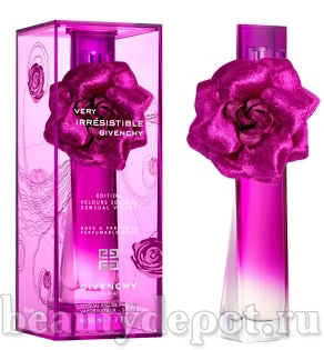Givenchy Very Irresistible Sensual Velvet Limited Edition (Живанши Вери Иррисистбл Сеншл Вельвет) - аромат Very Irresistible во всем неповторимом великолепии Бархата - Velvet Edition. Аромат Givenchy Very Irresistible возникает в новом ультрамодном облике, с ярким украшением в виде бархатной розы. Надушите ее и носите как стильный браслет, декоративную заколку или брошь! Она подчеркнет Ваш стиль и станет элегантным продолжением аромата. Побалуйте себя гипнотическим ароматом роз и Вы сразу почувствуете себя Very Irresistible!