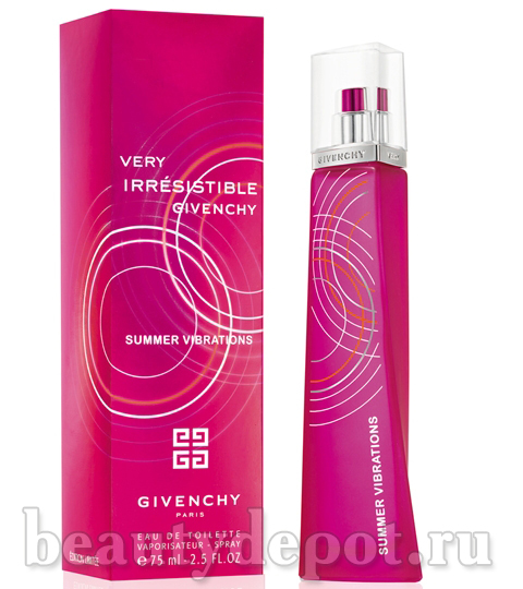 Givenchy Very Irresistible Summer Vibrations (Живанши Вери Иррисистбл Саммер Вибрейшн) - парфюм создан для женщин, которые даже на морском отдыхе предпочитают выглядеть эффектно. Свежая цитрусовая мелодия с солеными морскими нотками слегка подогрета знойными древесно-пряными мотивами.