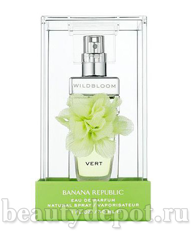 Banana Republic Wildbloom Vert (Банана Репаблик Уайлдблум Верт). Аромат принадлежит к семейству зеленые, характерными нотами которого являются свежие ноты скошенной травы, зеленые листья и огурцы. Аромат очень "свежий и молодой" - именно так характеризовал его креативный директор банановой Республики Simon Kneen. Именно по его заданию парфюмер Ilias Ermenidis создавал это творение. Его известные работы: Gucci by Gucci, Vera Wang Glam Princess, Jil Sander Pure, Harajuku Lovers Sunshine Cuties Love. "Нам нравится называть его кокетливый зеленый!" - Ilias Ermenidis.
