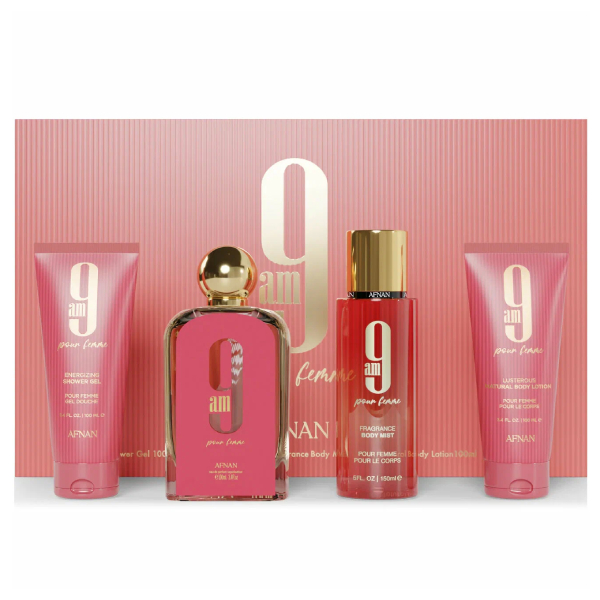 Afnan Perfumes / 9 am Pour Femme Pink набор: п/вода 100мл, мист д/т 150мл, лосьон д/т 100мл, гель д/д 100мл